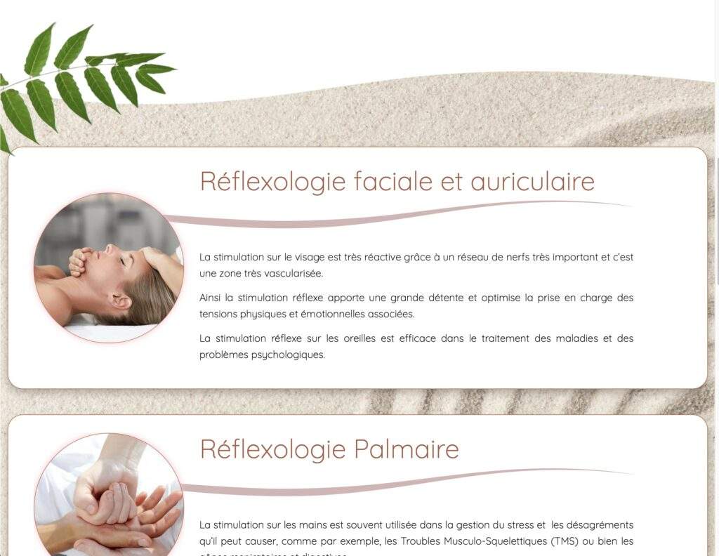 Cabinet de réflexologie professionnel qui propose la réflexologie faciale et auriculaire, plantaire, palmaire. Spécialisé dans la réflexologie pour les femmes enceintes et les nourrissons le cabinet propose aussi des cures et de la réflexologie bien-être pour aider à soulager les diverses maladie du corps.