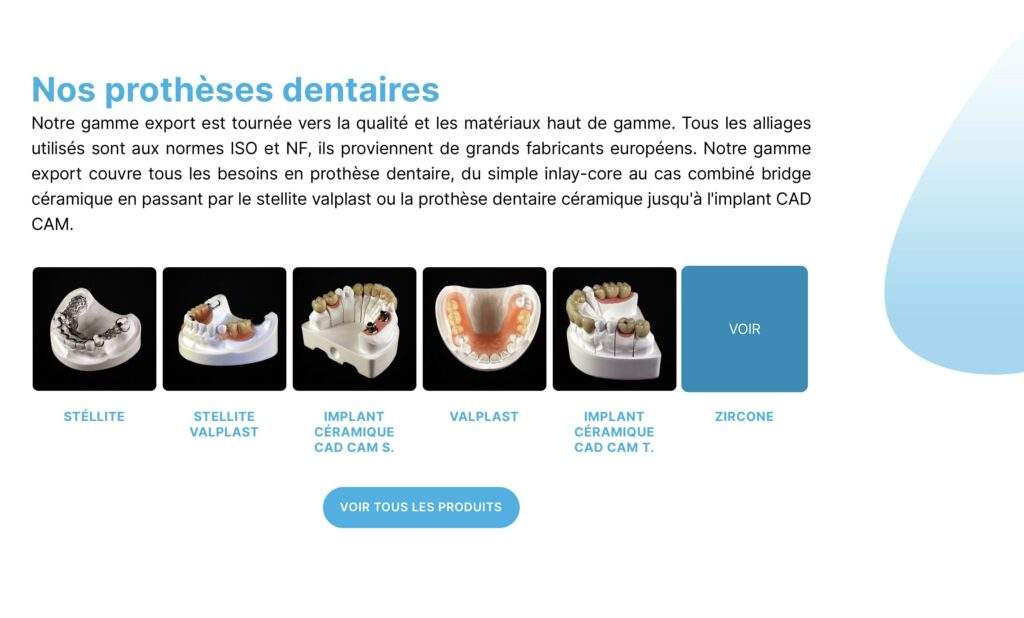 Avec plus de dix ans d’expériences dans le domaine de la prothèse dentaire, le laboratoire Mon Prothésiste à choisi Webotop pour la création de son nouveau site internet. L’objectif : créer un site web professionnel moderne, design et épuré. Retrouvez sur le site toutes les prothèses dentaires pour professionnels à la pointe de la technologie.